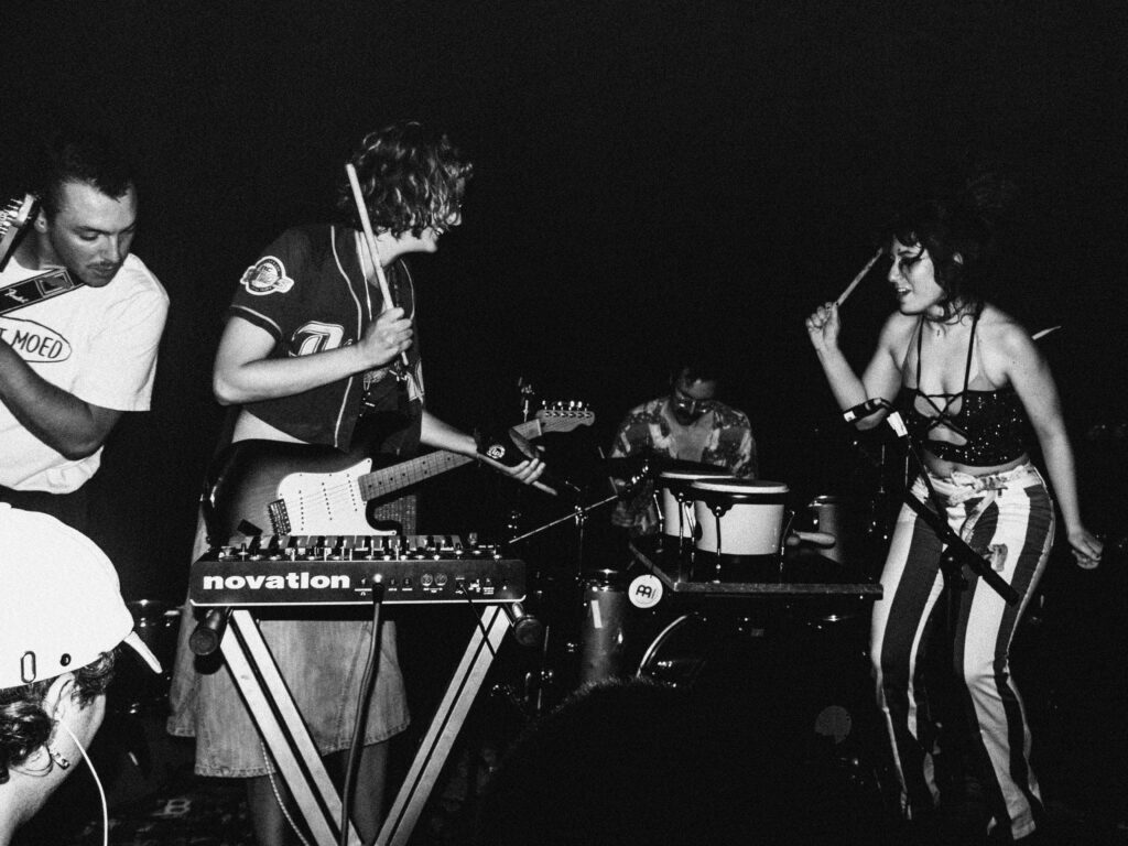 Supermarkt is een vijfkoppige noise {dance} rockband uit Amsterdam die zichzelf omschrijft als “experimental super-punk”. De band maakt rauwe, directe en compromisloze muziek, geïnspireerd door noise rock, Anatolische rock, no wave en tinnitus. In hun sound staan energie en intensiteit centraal, met ruimte voor improvisatie als belangrijk onderdeel van hun aanpak. Tekstueel vertelt Supermarkt verhalen over het absurde, het obscene en het zinloze, waarmee ze een eigen, herkenbare wereld neerzetten. Op dit moment werkt de band aan hun eerste EP; een proces dat bewust tijd kost, omdat ook het materiaal daarvoor vanuit improvisatie ontstaat. Buiten de repetitieruimte zoeken de bandleden juist de rustige momenten op — een contrast dat ook terug te horen is in hun spel tussen controle en ontregeling.
