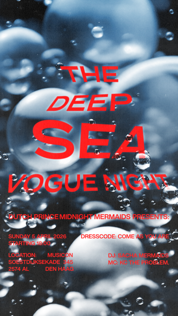 The Supreme Legendary Kiki House of Mermaids presenteert in samenwerking met Musicon: The Deep Sea Vogue Night: een community-gedreven ballroomavond waar deelnemers in verschillende categorieën “walken” en door een jury worden beoordeeld voor trofeeën, erkenning en respect.